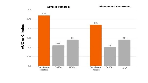 Figure 1: Prognostic performance of OncoAssure Prostate compared with NCCN and CAPRA for adverse pathology and biochemical recurrence